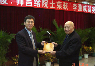 酒会上举行了“李薰成就奖”颁奖仪式,此次颁发的是2003年度和2004年度的“李薰成就奖”,分别授予给柯俊院士和师昌绪院士。