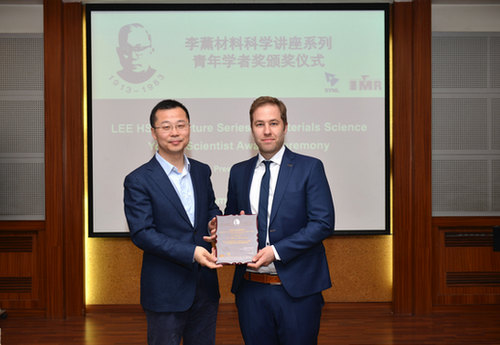 刘岗副所长为Thomas Lunkenbein博士颁发李薰青年学者奖奖牌