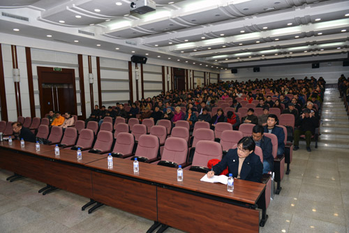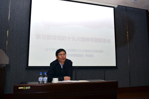11月17日下午,我所举办学习贯彻党的十九大精神专题报告会,邀请辽宁省委学习贯彻党的十九大精神宣讲团成员、辽宁省委讲师团团长李满春作了题为“深入学习贯彻党的十九大精神,不忘初心 牢记使命 永远奋斗”专题报告。所领导,党委委员,纪委委员,副处级以上领导干部,民主党派、无党派人士代表,职工、研究生党员300余人参加了会议。会议由党办主任黄粮主持。