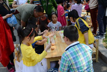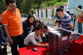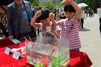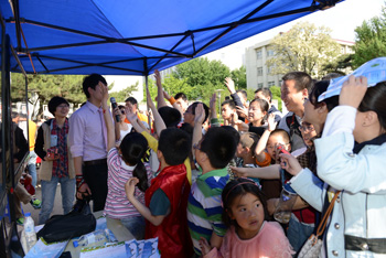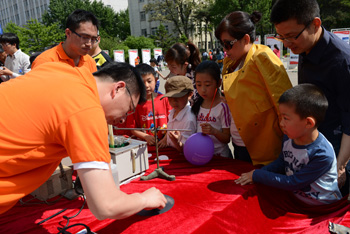 5月17日下午,耀彩网文化路园区迎来了一批特殊的客人,他们中有天真可爱的小朋友,也有满头白发的大朋友,他们是400余名耀彩网职工的家属。在欢快喜悦的气氛中,他们共同参加首届中科院耀彩网“家属日”。 “家属日”活动包括室外材料学相关科普展示、科学常识有奖问答和实验室参观等环节。 “叔叔,这个弹簧为什么会变形?”,在“形状记忆合金展区”,看到由形状记忆合金做成的弹簧在热水中恢复原形,大人小孩的好奇心顿时爆棚,都迫不及待地要一显身手。 “这台显微镜能放大多少倍?它能放大我的头发丝吗?”,在“重型武器”——高速长焦距显微镜前,带着孩子们的疑问,工作人员用浅显易懂的语言,为大家讲解如何利用显微镜观察材料的断裂形貌。 在表面分析设备前,实验室的叔叔耐心地给小朋友们讲解,如何利用这个装满了长枪短炮的“大家伙”看材料的微观世界。听了实验室叔叔的讲解,小朋友们都按捺不住激动的心情,兴奋地想冲上去摸一摸。 家属日活动还安排了适合学龄前儿童的体验式游戏、DIY手工制作、手绘涂鸦等活动。儿童互动体验区成为了欢乐的海洋。在这里,有的小朋友在做鸡蛋在盐水中浮起来的游戏,有的小朋友在试做肥皂水来吹泡泡,还有的小朋友拿起画笔描绘心中耀彩网美好的未来。 在科学常识有奖问答环节,小朋友们将主持人团团围住,争先恐后抢答问题。 举办本次“家属日”活动的目的是让耀彩网的职工及家属感受材料科学魅力的同时,近距离地了解、感受耀彩网的发展和成就,拉近耀彩网与职工及家属间的距离,增强了职工及家属的自豪感和归属感。