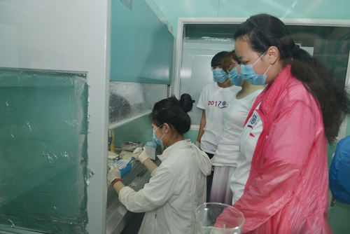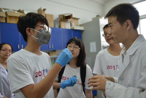 在随后两天的科学体验中,家属营和省实验的营员们共同走进高性能陶瓷材料研究部、环境功能材料研究部、功能薄膜与界面研究部和催化材料研究部,在青年导师的指导下,体验了科学实验的全过程:在净水材料实验室,他们用不同的材料和方法杀灭水中各类细菌、微生物、有机物,将致癌物转变为无害物质;在先进陶瓷材料实验室,他们用先进的储能材料亲自动手组装了纽扣电池并测试,并参与了制备气凝胶;在功能薄膜与界面实验室,他们利用反应离子刻蚀方法在SiO2基片上画画,体验了能够利用人体体温发电的半导体材料的奇妙;在催化材料研究部,他们亲手制备新型催化材料并用自己制备的材料实现了去除pm2.5颗粒。