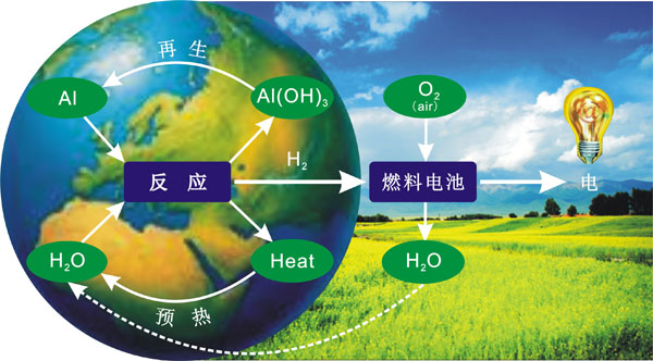 铝是地壳中最富有的金属元素,理论上可100% 重复利用。铝/水反应所提供的绿色能源—氢能,将有可能解决人类可持续性发展面临的能源短缺、温室效应、环境污染等挑战。