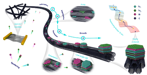 图1 Bi2Te3-SWCNT复合自支撑热电薄膜材料生长结构示意图