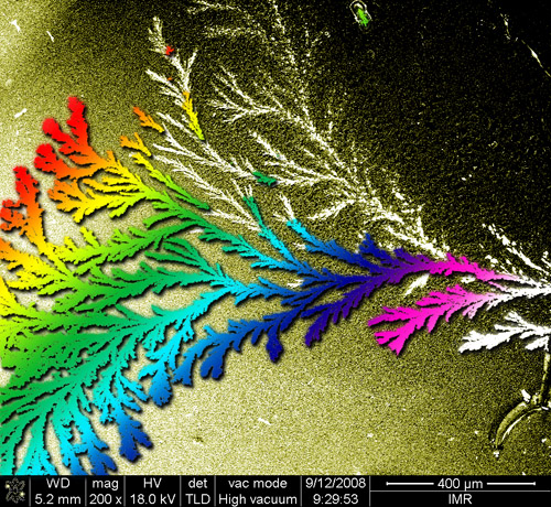 当“碳纳米管森林”浸渍在水中之后,随着水分的挥发,在毛细力作用下,相邻的碳纳米管被拉到一起,最终形成凤尾状图案。