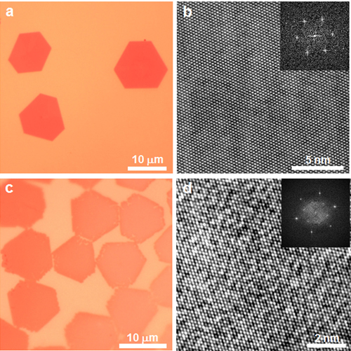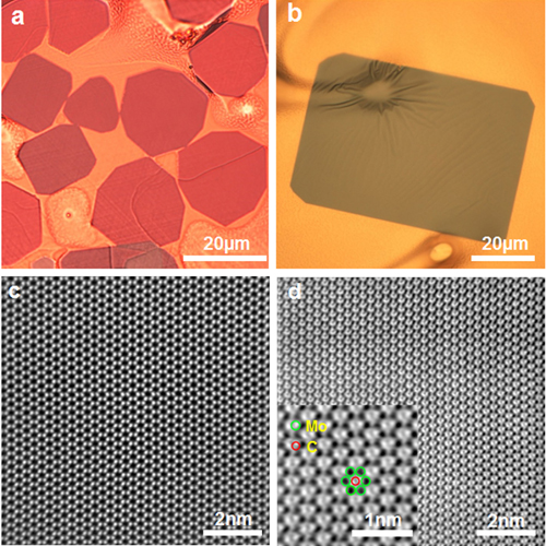图3 CVD方法制备的高质量(a,b)二维WC晶体和(c,d)二维TaC晶体