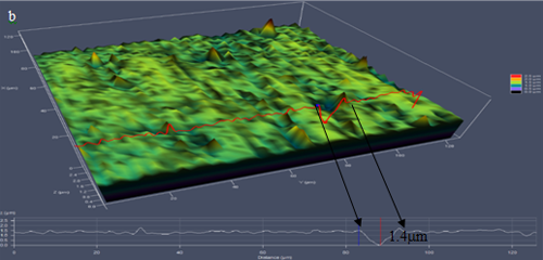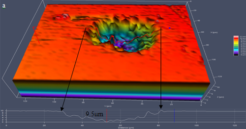 铜绿假单胞菌共培养14天后,去除腐蚀产物及细菌生物膜后所找到的最深点蚀