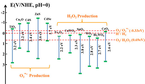 通过对可能产生光催化“记忆”效应的有效活性基团的研究,他们进一步发现,光催化“记忆”效应的产生并不必须在此过程中通过单电子氧气还原反应生成超氧活性基团,修饰组元所储存电子还可以通过双电子氧气还原反应生成双氧水,同样能够具有光催化“记忆”效应。因此,对储存电子的能量要求可以大大降低,修饰组元的导带底电势可以降低到仅需要负于双电子氧气还原反应电势。例如,SnO2、WO3、CuWO4、BiWO6、CeO2等导带底位置高于氧气双电子还原电势位置的半导体材料都可能成为具有光催化“记忆”效应的材料体系中的修饰组元,从而使可能具有此效应的材料体系得到很大拓展。此外,具有更低导带电势修饰组元使光吸收功能组分与储存电子功能组分的导带底电势差扩大,有利于增强体系的光生电子转移的能力,其性能也有望得到进一步提升。在此认识的指导下,他们研发出第三代具有“记忆”效应的光催化材料——氧化锡纳米颗粒修饰的氧化亚铜纳米立方单晶光催化材料。在此体系中,可见光照射下Cu2O纳米立方单晶产生光生电子-空穴对。在p-n结内建电场与匹配能带结构作用下,光生电子转移并富集在SnO2纳米颗粒上,从而增强其可见光下的电子-空穴分离效率,提高其光催化活性。可见光关闭之后,富集的光生电子释放后与氧气发生双电子还原反应,从而在黑暗中产生活性基团H2O2,产生光催化“记忆”效应。研究发现,此材料体系具有很强的在黑暗中通过电子释放持续产生活性H2O2的能力,在光照关闭后24小时仍然能够产生H2O2,从而能够长期持续具有光催化“记忆”效应(Scientific Reports, 2016, 6, 20878)。