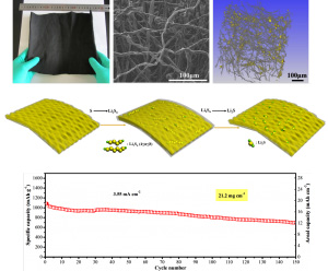 三维空心碳纤维泡沫照片,三维空心碳纤维泡沫与硫/多壁碳纳米管/炭黑纳米团簇形成的复合结构SEM和XRM分析、示意图及其电化学性能