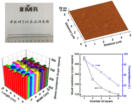 图1 以松香作为转移介质制备的洁净、无损的大面积石墨烯薄膜