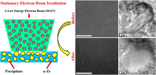 上述不同于理论预期的发现将引起关于入射电子使靶材晶格原子发生位移所需临界条件的讨论。低能电子束对锆合金的辐照损伤研究结果有助于深入理解锆合金在核反应堆中应用时电子(β射线)辐照损伤的行为本质。由于低能电子束可以引起α-Zr晶体结构变化,静态聚焦低能电子束持续辐照可能发展成为一种研究金属及其他无机材料相变过程的新方法,进而从一个全新角度探索材料新的物理和化学特征。该研究的相关研究成果3月15日在Scientific Reports上在线发表(10.1038/s41598-017-00251-3)。