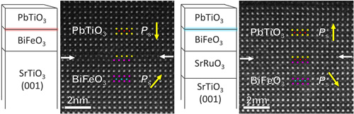 在异质界面方面,该研究小组通过精心设计的薄膜体系,利用原子尺度的脉冲激光生长技术,成功地制备了具有极化头对头带正电和尾对尾带负电特征的BiFeO3/PbTiO3异质界面。