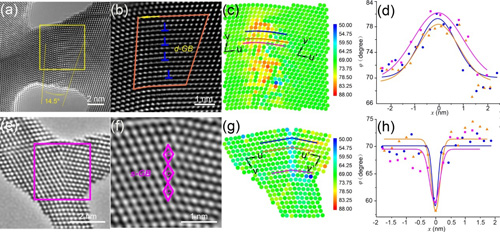 图1 (a-d) 位错型晶界(DGB)和(e-h)结构单元型晶界(SGB)的像差校正电子显微像及定量应变分析。