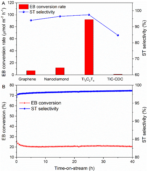 图2 Ti3C2TxMXene的乙苯脱氢活性测试