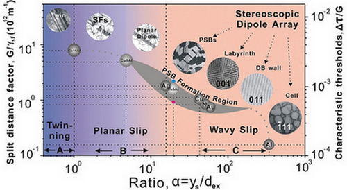 图1 控制FCC金属材料疲劳后形成不同位错组态的统一演化因子