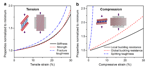 图2:生物材料通过变形过程中的原位结构再取向效应实现拉伸与压缩条件下不同力学性能的全面同步提升