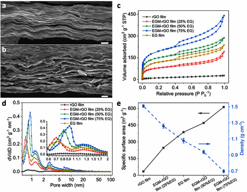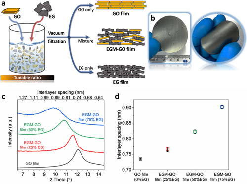 图2. 片层间距可调节的复合石墨烯薄膜的结构表征