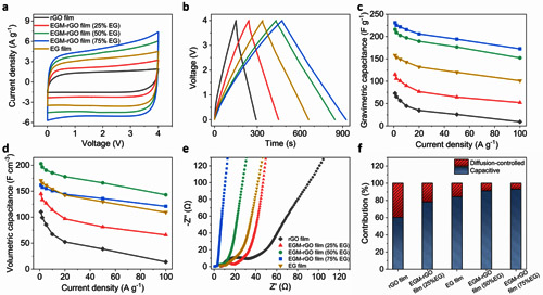 图3. 片层间距可调节的复合石墨烯薄膜的电化学表征