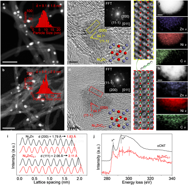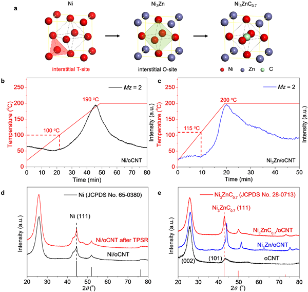 图2. Ni3Zn和Ni3ZnC0.7催化剂的微观结构表征