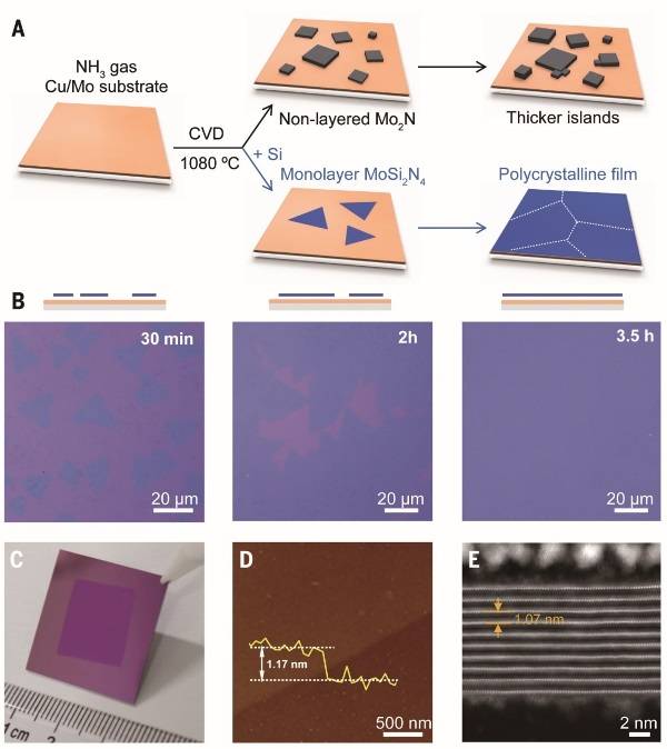 8月7日,国际学术期刊《Science》在线发表了我所沈阳材料科学国家研究中心先进炭材料研究部在新型二维材料方面的最新进展“Chemical vapor deposition of layered two-dimensional MoSi2N4 materials”。