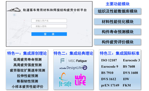 图1. 轨道客车常用材料和焊接结构疲劳分析平台主要模块与特色