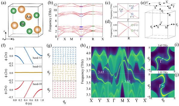 图3 在非传统超导AuBe合金中揭示的三重和四重拓扑外尔声子共存及其产生的极长表面拓扑声子弧态
