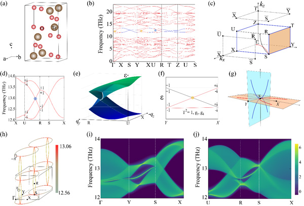 图4 在TeO3材料中揭示的受非点式空间群保护的新型沙漏拓扑声子态,其沙漏声子形成一张相互连通的网格,并产生鼓膜类的表面态