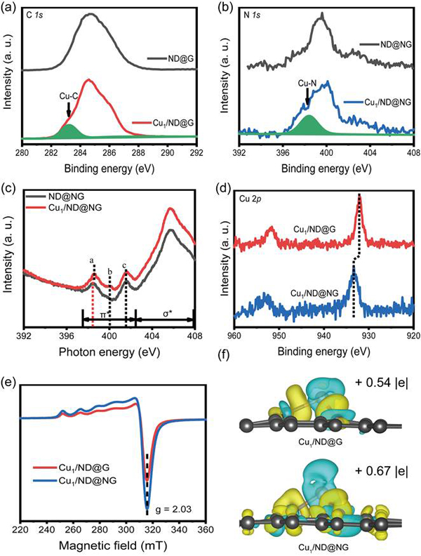 图2 原子级分散Cu催化剂不同配位环境(Cu-C、Cu-N)的电子结构表征结果