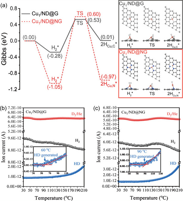 图3 原子级分散Cu催化剂不同配位环境(Cu-C、Cu-N)活化氢气的DFT与H2-D2交换实验结果