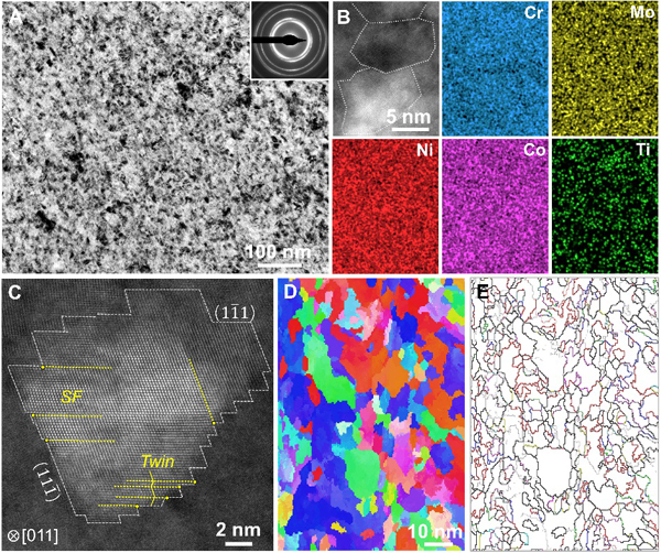 图1 具有弛豫晶界的纳米晶MP35N合金的结构