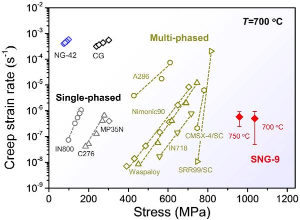 金属材料在高温下长期承受低于屈服强度的应力作用时会发生永久形变,通常称为蠕变。蠕变会导致高温金属构件的变形失效,是高温合金的一项重要性能指标。通过合金化和减少晶界(制备单晶)可提升高温合金抗蠕变性能,但这带来合金制备工艺复杂、成本居高不下等一系列问题。进一步提升高温合金的抗蠕变性能面临巨大挑战。