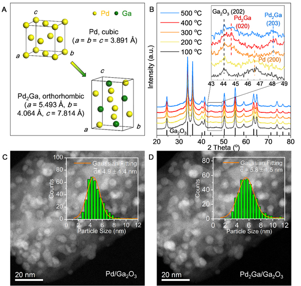 图1 反应金属-载体相互作用调控Pd2Ga金属间化合物纳米粒子催化剂形成