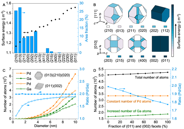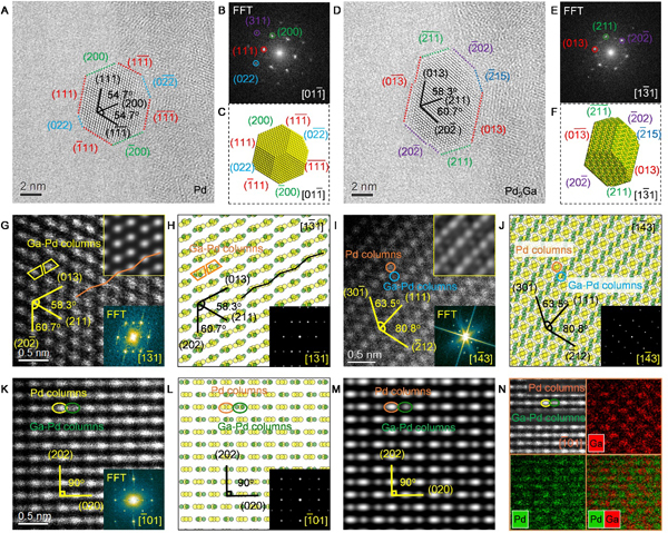 图2 原子尺度解析Pd2Ga金属间化合物纳米粒子微观结构图