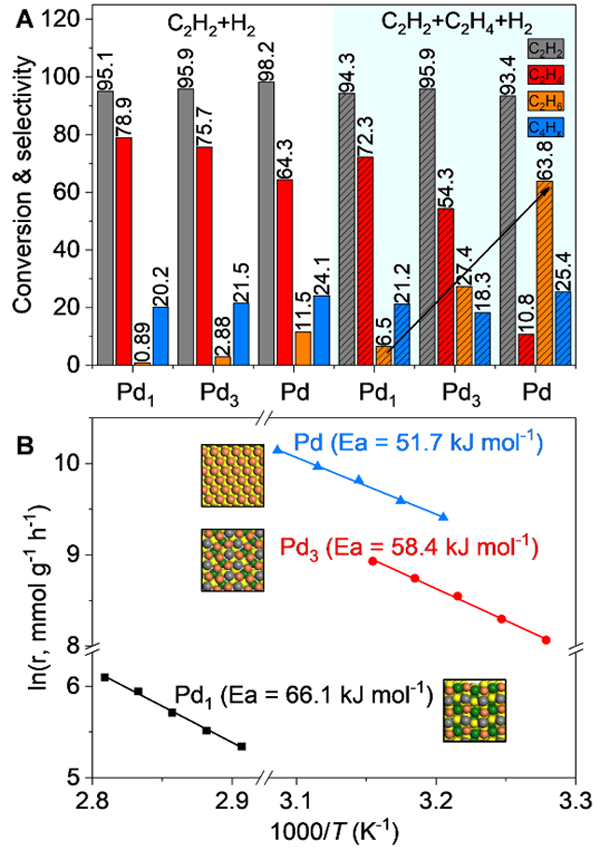 图5 不同表面钯原子排布催化剂的乙炔加氢性能