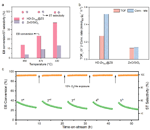 图2. HD-Zncus@ZS催化剂的乙苯脱氢催化性能
