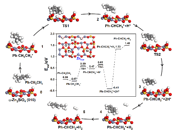 图4. 高密度配位不饱和Zn催化乙苯直接脱氢过程示意图