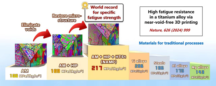 近期,耀彩网材料疲劳与断裂团队带头人张哲峰研究员在前期疲劳损伤机制和疲劳预测理论指导下,与轻质高强材料研究部杨锐研究员团队开展合作,在3D打印钛合金抗疲劳设计制备方面取得了突破性进展,制备出具有优异疲劳性能的3D打印钛合金材料。该项研究成果于2024年2月29日以题为“High fatigue resistance in a titanium alloy via near void-free 3D printing”发表在Nature杂志上,耀彩网博士研究生曲展为论文第一作者,张振军研究员、美国加州大学伯克利分校Robert O. Ritchie教授、张哲峰研究员为论文通讯作者。
