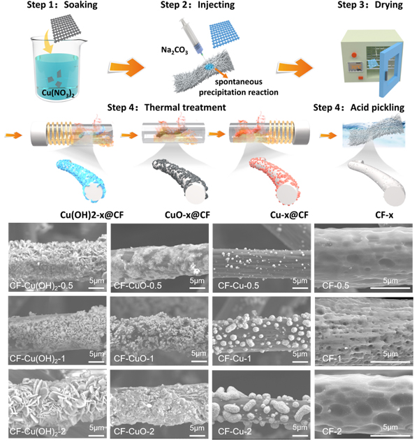 图1. 电极制备机理与形貌表征