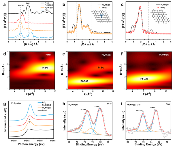 图1. XAFS和XPS表征。a-c EXAFS谱图, d-f小波变换分析,g-iXPS谱图。