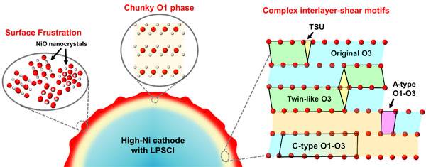 图4. 界面电化学反应诱导的层状氧化物表面“晶格碎化”
