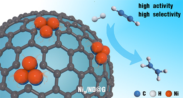 乙炔选择性加氢是乙烯工业中去除乙炔杂质,获得高品质乙烯产品的关键工艺环节。长期以来,贵金属钯催化剂因其优异的加氢活性而被广泛应用于乙炔选择性加氢反应中。然而,贵金属的使用极大地增加了工业生产成本。因此,开发高效、廉价且稳定的非贵金属催化剂成为工业催化领域研究的热点。近年来,非贵金属镍(Ni)在乙炔选择性加氢反应中的研究获得广泛关注。Ni在乙炔加氢过程中表现出较高的加氢活性,但乙烯的选择性却较难控制。如何在保持高活性的同时提高乙烯的选择性,是Ni催化乙炔选择性加氢面临的一个重要挑战。