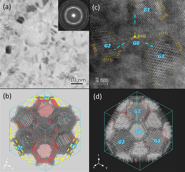 图1. 纯Pt中晶粒尺寸约为4nm的Kelvin晶体结构表征