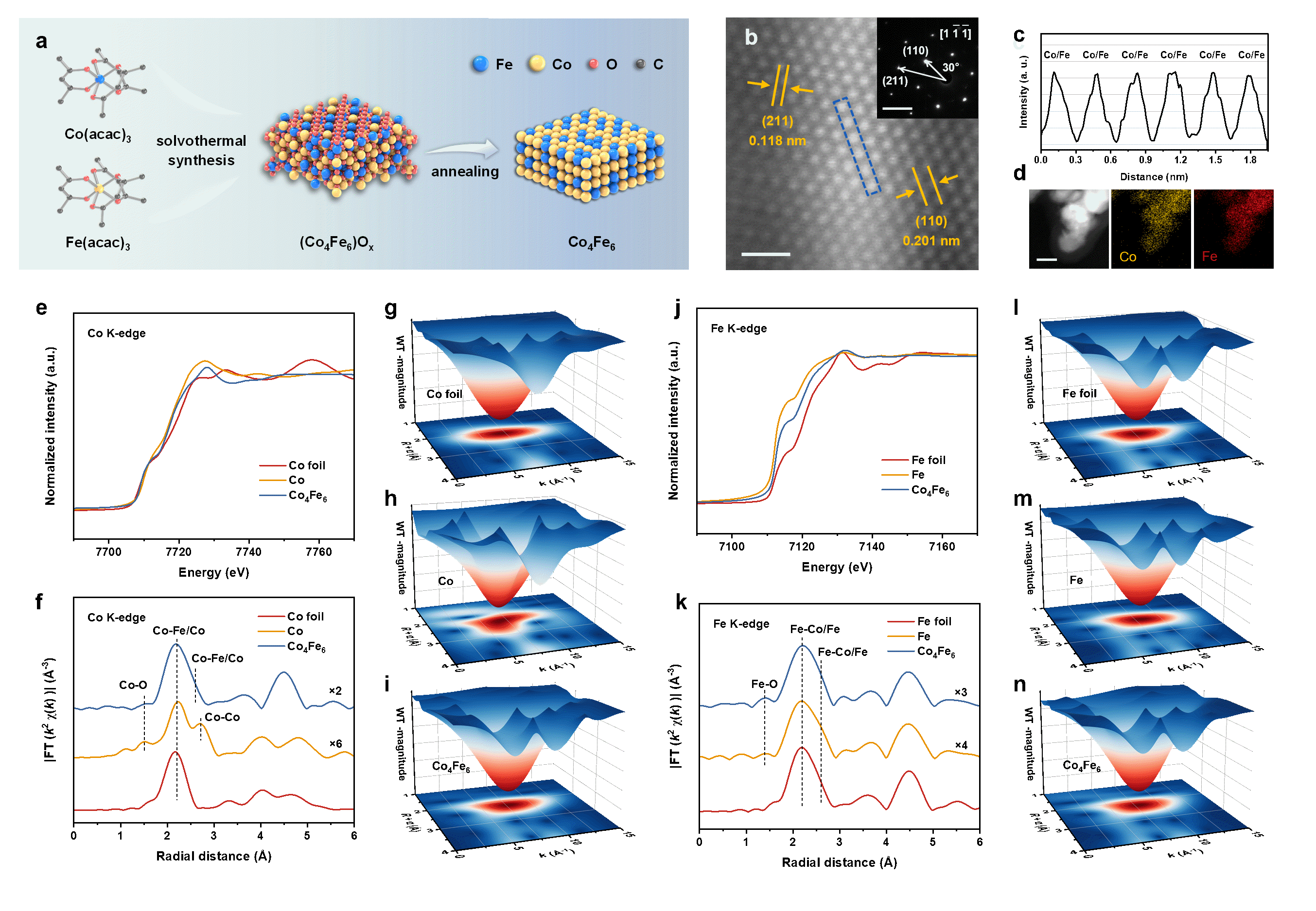 图1. Co4Fe6合金的制备方法及物相与结构表征