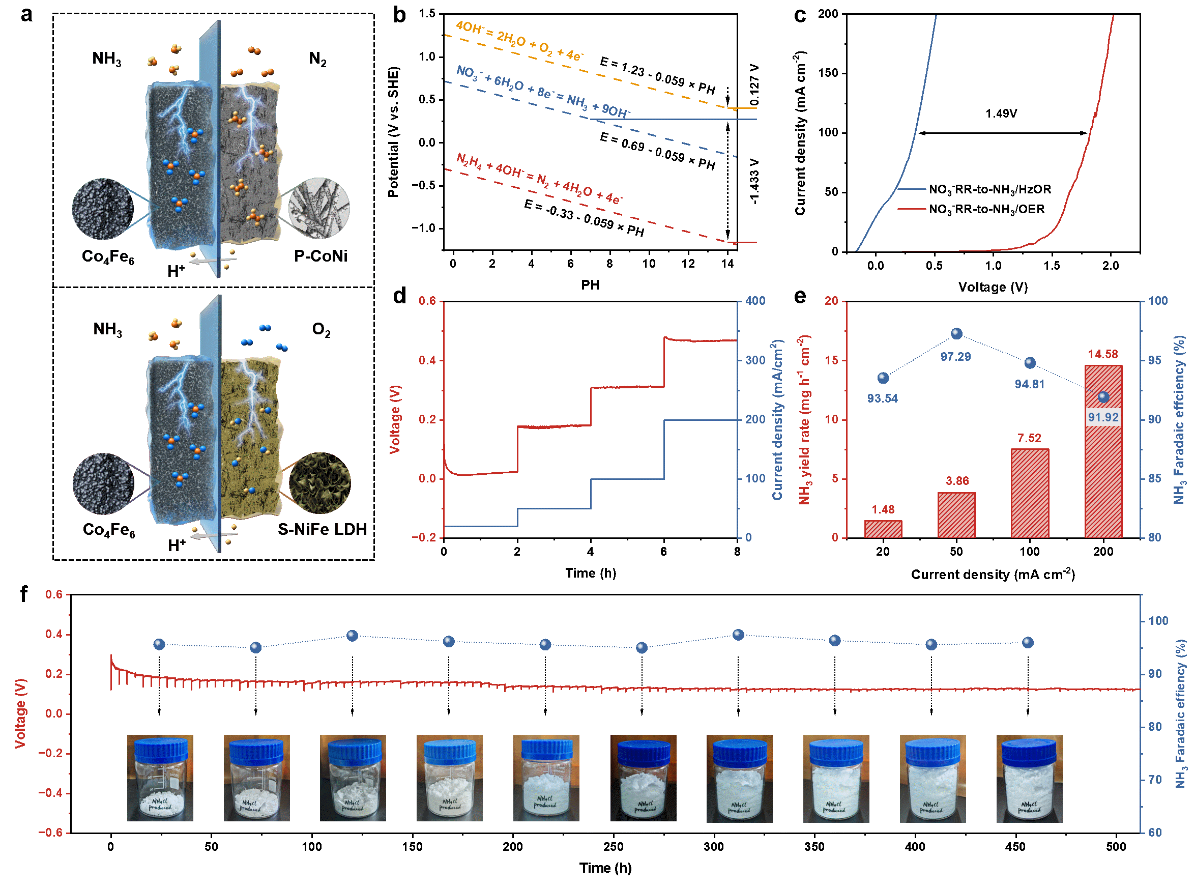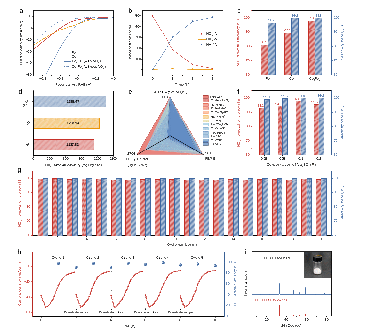 图2. Co4Fe6合金的电催化硝酸根转化制氨性能