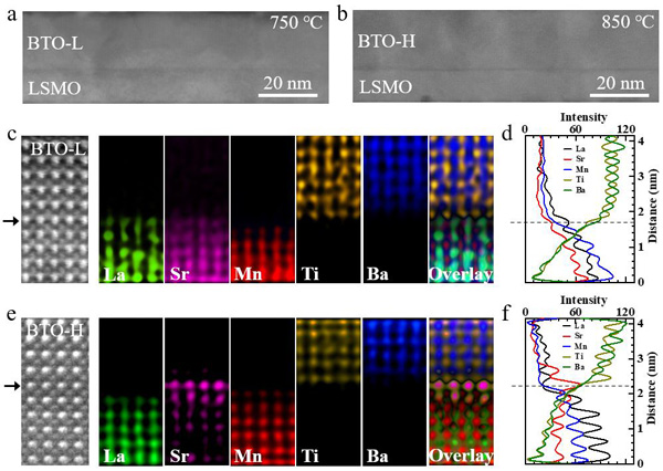 图2. La0.67Sr0.33MnO3/BaTiO3外延界面附近Sr元素的扩散