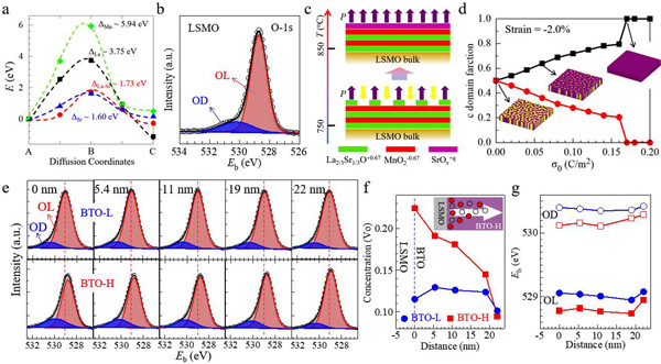 图3. BaTiO3单晶薄膜自发极化铁电单畴的形成机制与氧空位梯度分布