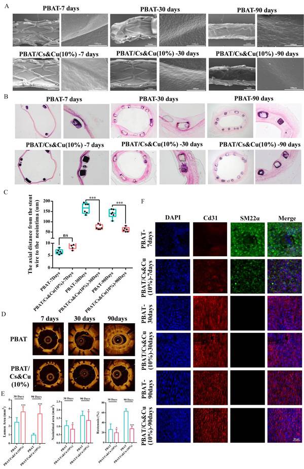 图1. 载铜功能化涂层处理镁合金支架植入后的组织学响应。实现快速内皮化、抗血栓形成、降低狭窄率等性能