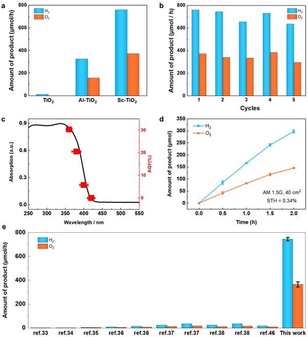 图3. Sc掺杂金红石TiO₂的光催化全分解水性能