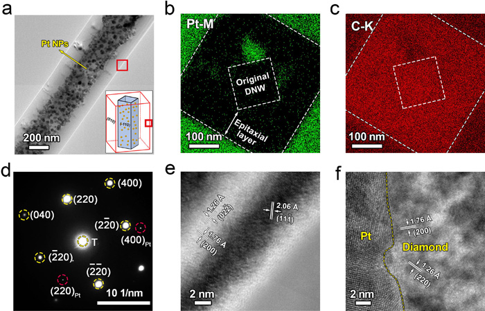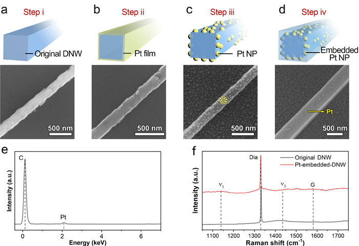 图1. 内嵌铂纳米颗粒单晶金刚石纳米线的制备