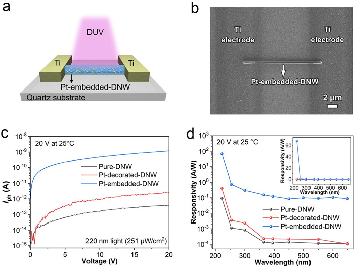 图3. 单晶金刚石纳米线光电探测器的室温日盲紫外光电探测性能