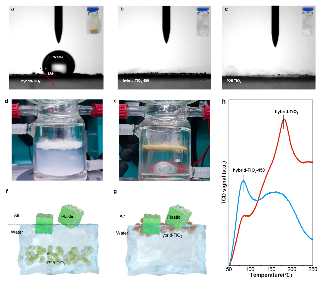 图1. 有机-无机杂化TiO₂的漂浮特性和氧吸附特性